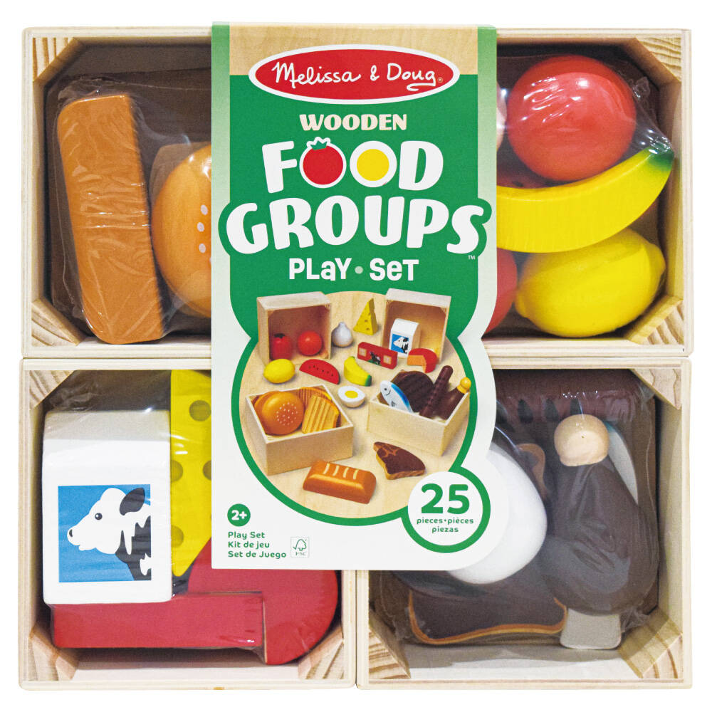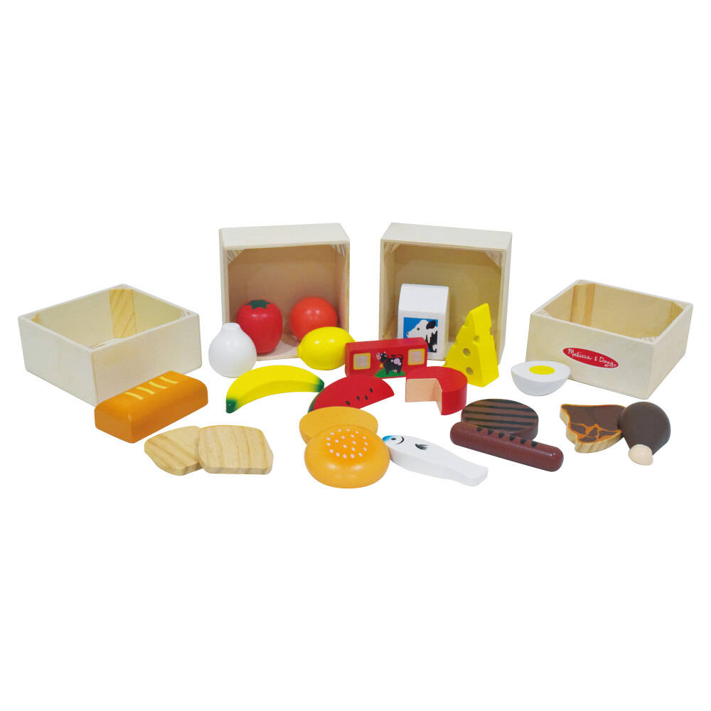 お野菜、果物、パン、お肉、乳製品の食品がひとセットになっているのではじめてのおままごと遊びにぴったりです。